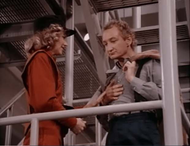 It looks like Elizabeth is hanging out the back with some mannequins auditioning for the Dana Barrett role in Ghostbusters. But no Willie explains that she is channeling a message from The Leader who seems to have taken over her mind. Between this and Julie’s gigantic cellphone I’m sure I don’t remember communication technology in the 80’s being this bad.