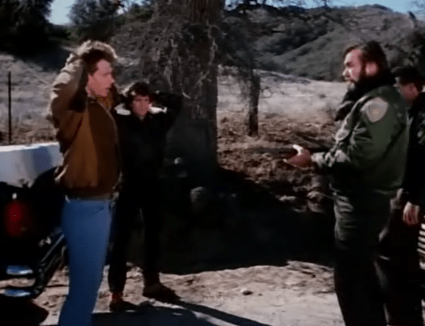 Let’s return to the opening shots of this week’s episode of Dukes of Lizzard, V. We open with Donovan and Kyle being pursued by the local sheriff who is, in keeping with Anglo-Saxon tradition, utterly corrupt. Like that one boy in your class who went through puberty before everyone else and used it to their advantage, the Sheriff is extracting menaces from anyone travelling through their town/county/these-here-parts. Unfortunately Mike and Kyle have strayed into his territory with a pickup truck full of guns and ammo. Bum.