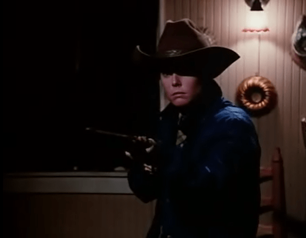 After much debate about what to do about the horses and these new troublemakers in these-here-parts the Sheriff decides that going up there and randomly shooting at the ranch is the best course of action. They haven’t accounted for Donovan and Kyle’s abilities to deflect random shooting. It’s been well proven many times in this series already. This attack on the ranch causes Donovan to ditch his plans to “do Tucson” tomorrow and Kyle is dispatched alone so that Donovan can spend more time getting pulled by Kathy’s tractor (again mostly off-camera but we know that’s why he’s really staying). Oh and to get chased by a skyfighter while riding a white horse again.