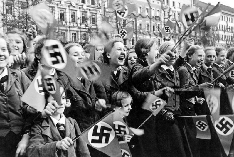 Firstly, the Nazis were really really popular. Very few people saw any problems with the Nazi government, certainly during the 1930s and early 1940s when for average Germans (who weren’t Jews, leftists, homosexuals, Roma etc) life was pretty sweet. In Arms, Autarky and Aggression, by William Carr, it is pointed out that the nationalist and imperialist policies of the Nazis were contiguous with general German ambitions and sentiments at the time. This made it really hard for those who opposed Hitler to speak up or take action because of the overwhelming popularity of the Party for a considerable period of Nazi rule.